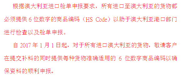 關(guān)于: 2017年進(jìn)口澳大利亞商品編碼提交要求